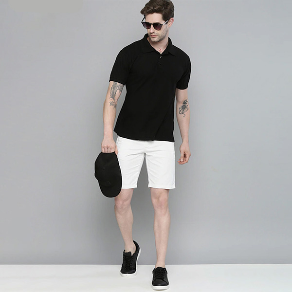 White solid mid-rise chino shorts, has 5 pockets, zip closure