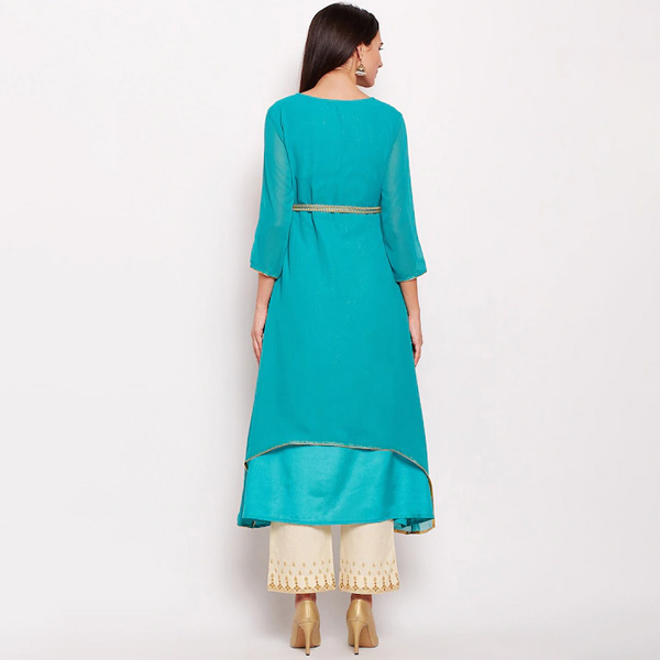 Women Teal Embroidered Kurta